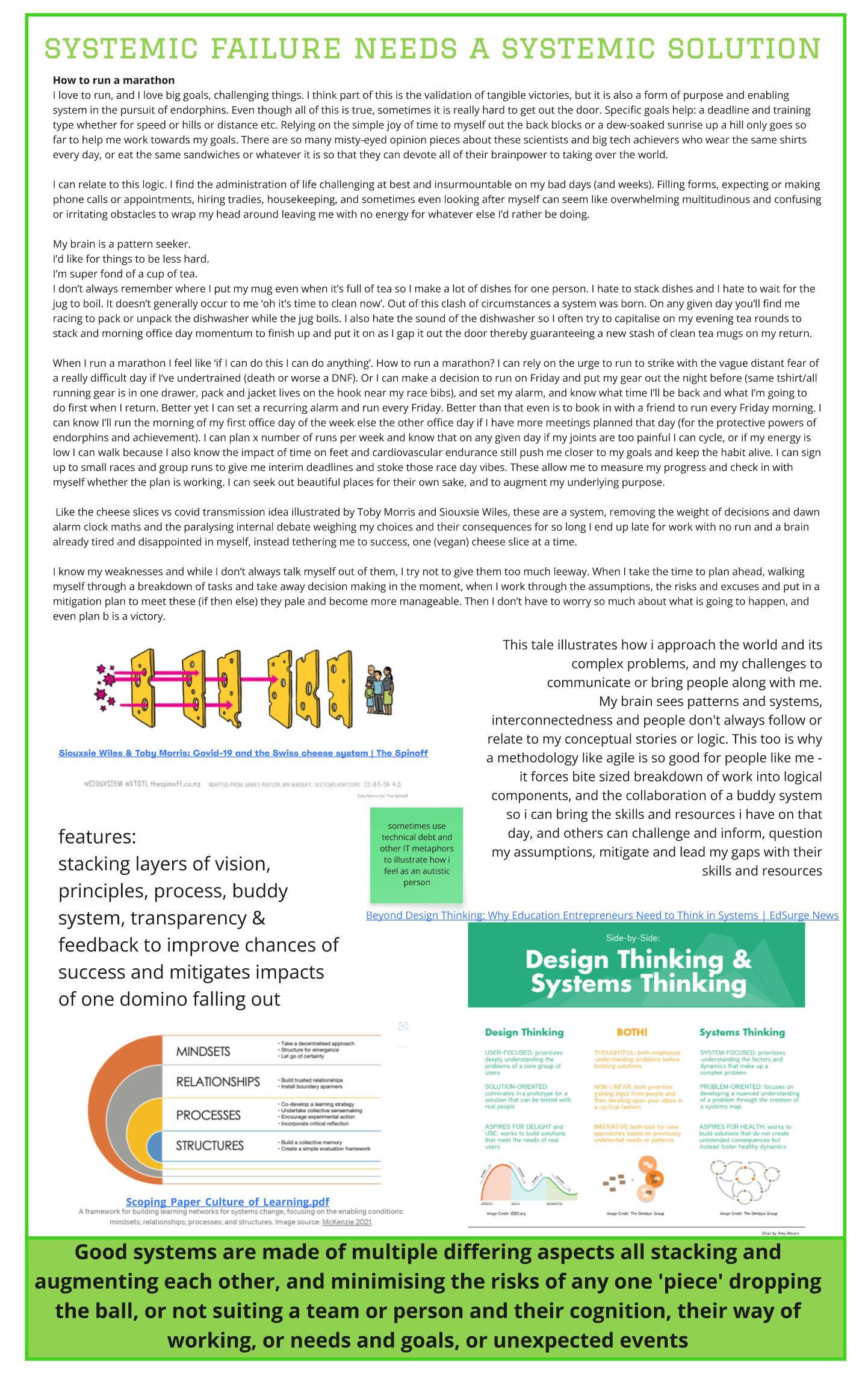 I also discussed it with my coach this week, looking for other ways I can leverage this tendency - finding ways to work with my brain not against it.
